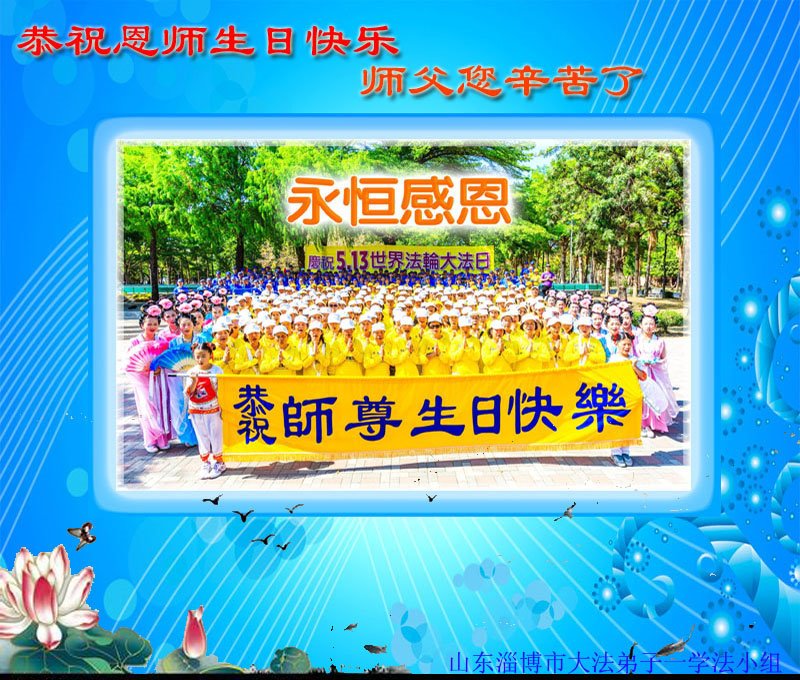 山東淄博市一學法小組大法弟子恭祝恩師生日快樂!