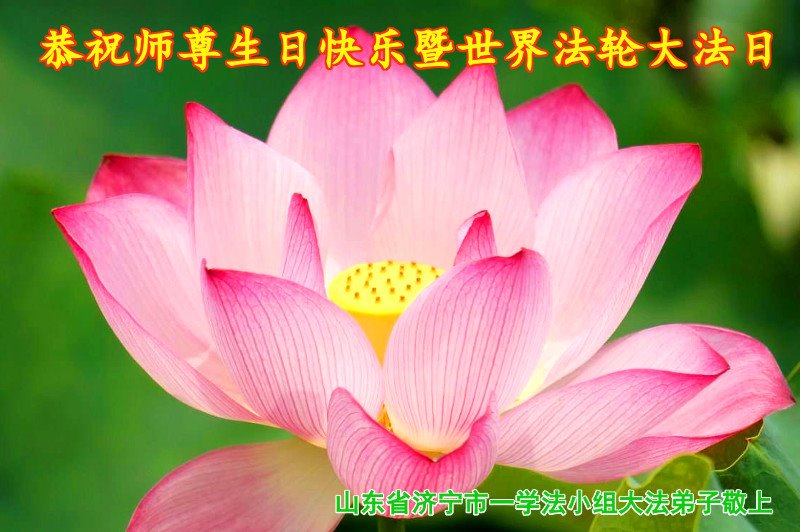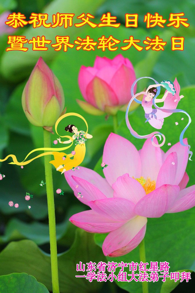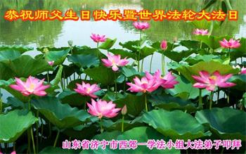 山東省濟寧市一學法小組大法弟子恭祝師尊生日快樂!暨世界法輪大法日!