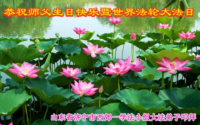 山東省濟寧市西郊一學法小組大法弟子恭祝師父生日快樂!暨世界法輪大法日!