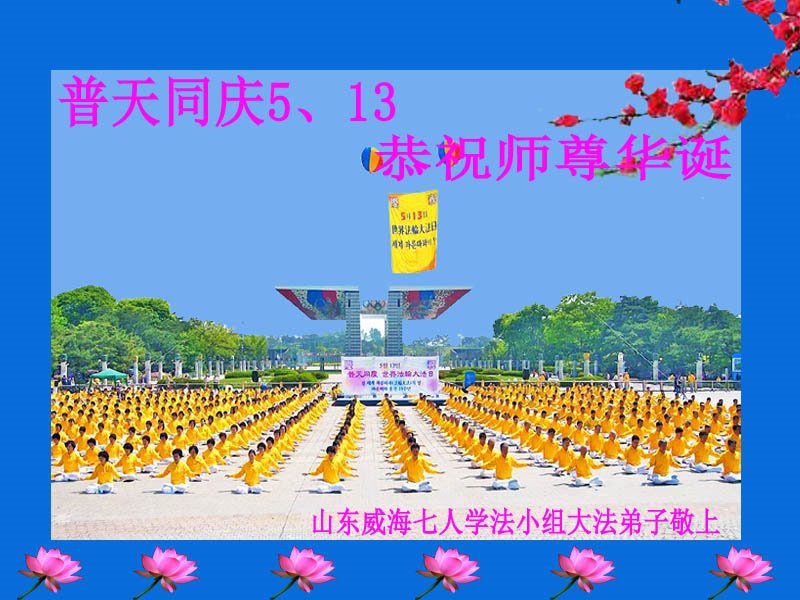 山東淄博張店一學法小組全體大法弟子恭祝師尊生日快樂!慶祝5.13世界法輪大法日