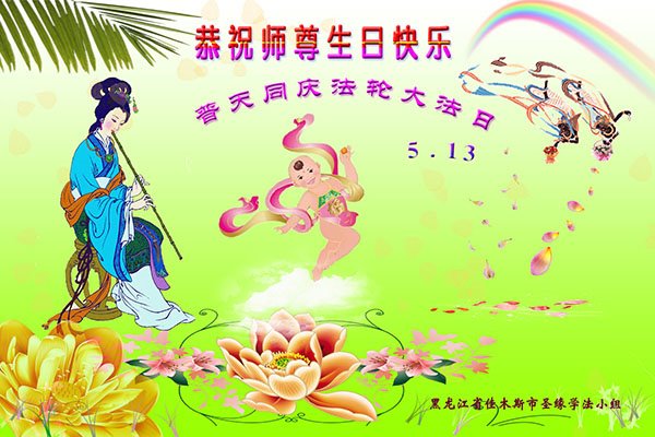 黑龍江省佳木斯學法小組大法弟子祝師尊生日快樂!