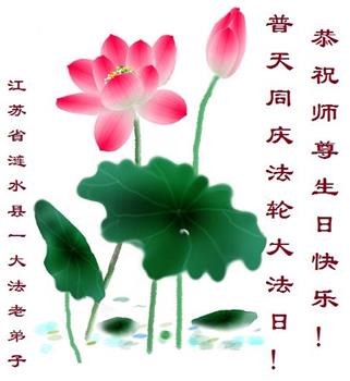 江蘇省淮安市漣水縣一大法老弟子恭祝師尊生日快樂!慶祝世界法輪大法日!