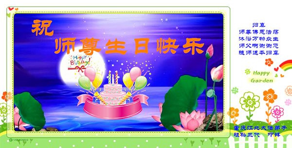 重慶江北聖忠大法弟子祝師父生日快樂!