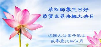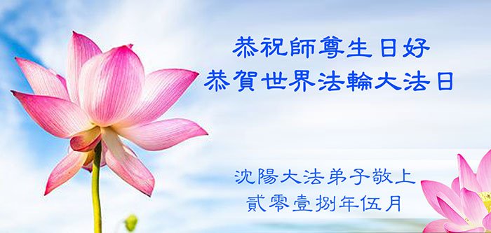 遼寧省瀋陽大法弟子恭祝師尊生日好!恭祝世界法輪大法日!