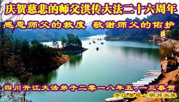四川開江大法弟子慶賀慈悲偉大的師尊洪傳大法二十六週年!感恩師父的救度!敬謝師尊的佑護!