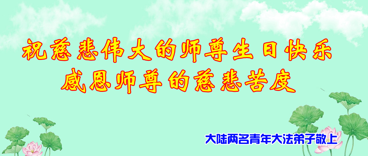 大陸兩名青年大法弟子恭祝師尊華誕!