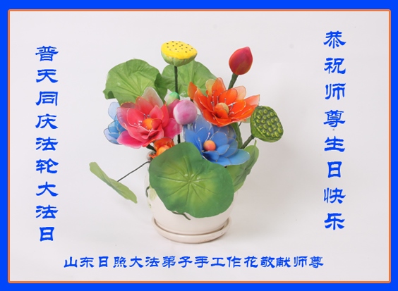 山東日照大法弟子手工做花恭祝師尊生日快樂!
