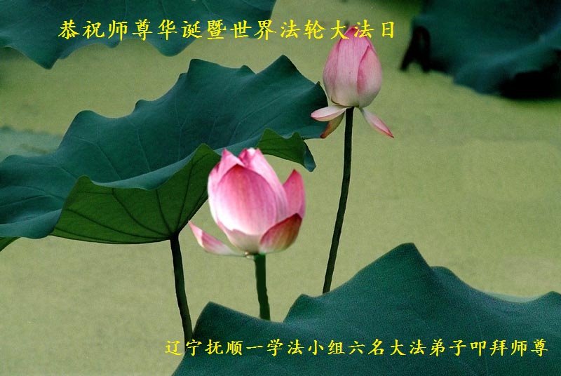 遼寧撫順市一學法小組六名大法弟子恭祝師尊華誕快樂!暨世界法輪大法日!