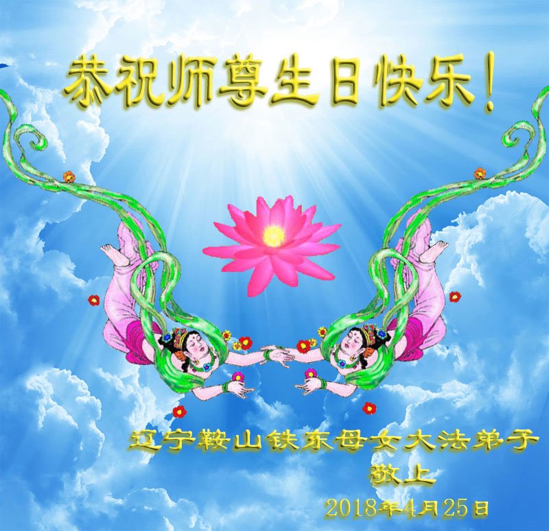 遼寧鞍山鐵東區一母女大法弟子恭祝師父生日快樂!