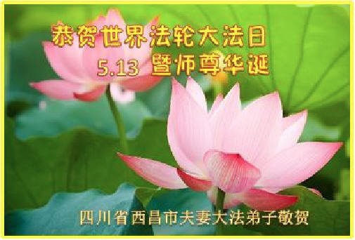 四川省涼山州西昌市夫妻大法弟子恭賀世界法輪大法日暨師尊華誕!