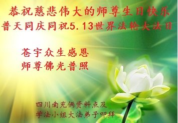 四川南充兩資料點及學法小組大法弟子恭祝慈悲偉大的師尊生日快樂!普天同慶世界法輪大法日!