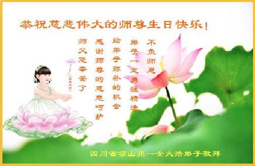 我是遼寧鞍山一名老年女大法弟子。我懷著萬分感激的心情恭祝偉大、慈悲的師尊生日快樂!
