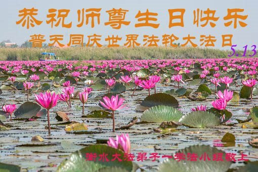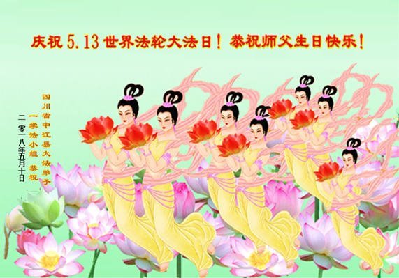 四川省德陽市中江縣一學法小組大法弟子恭祝師尊生日快樂!慶祝世界法輪大法日!