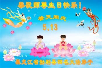 黑龍江鶴崗市一向陽區大法弟子恭賀世界法輪大法日!恭祝慈悲偉大的師尊生日快樂!