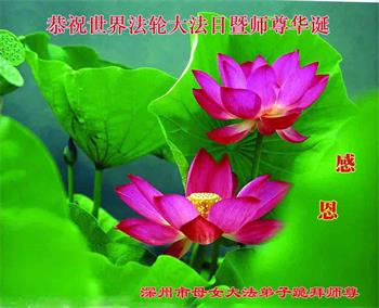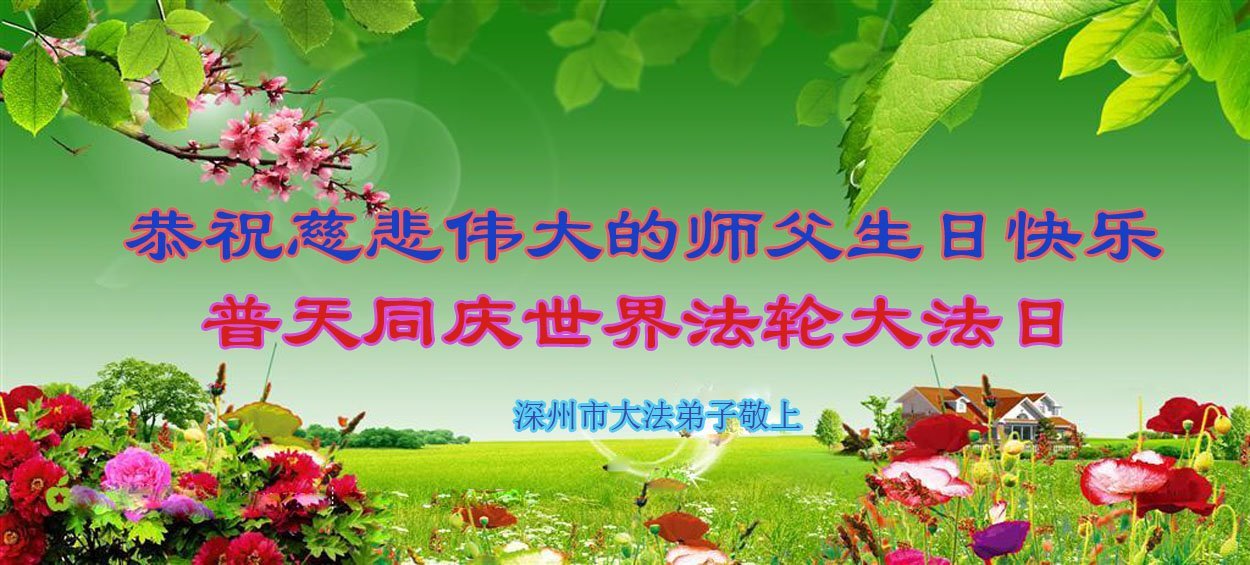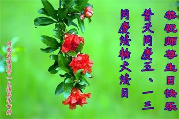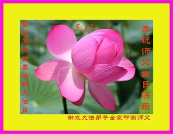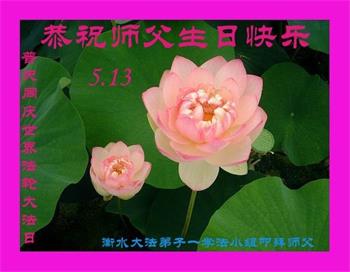 山東省淄博市一名大法弟子恭祝師尊生日快樂!恭賀五﹒一三法輪大法日!慶祝法輪大法洪傳世界二十六週年!
