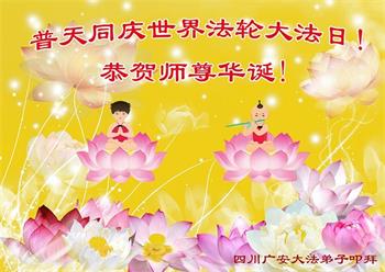 四川廣安市大法弟子恭賀世界法輪大法日!恭祝師尊生日快樂!