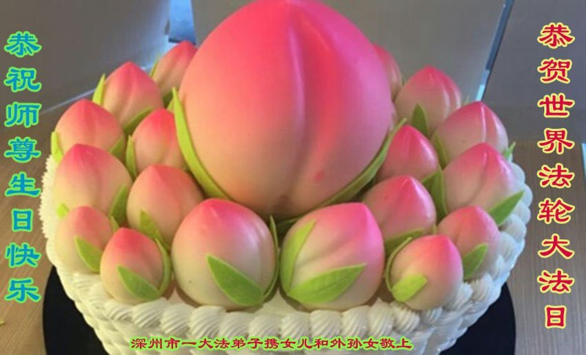 四川母女大法弟子及家人恭祝慈悲偉大的師父生日快樂!恭賀法輪大法日!跪拜師父的慈悲救度之恩!