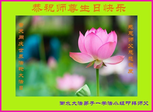 河北省衡水大法弟子一學法小組恭賀法輪大法日!恭祝師尊生日快樂!