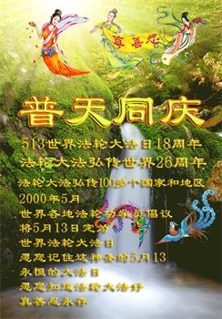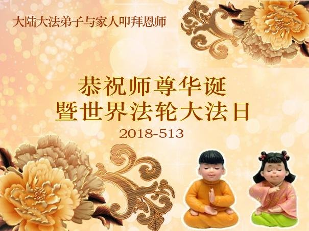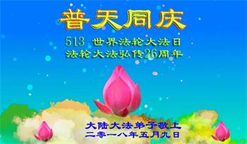 大陸大法弟子恭祝師尊生日快樂!慶賀法輪大法洪傳二十六週年!暨世界法輪大法日!