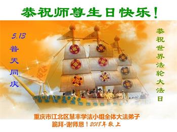 普天同慶神聖的日子,五一三是世界法輪大法日,也是偉大師父華誕日,我們學法組全體弟子恭敬祝賀偉大的師父生日快樂!
