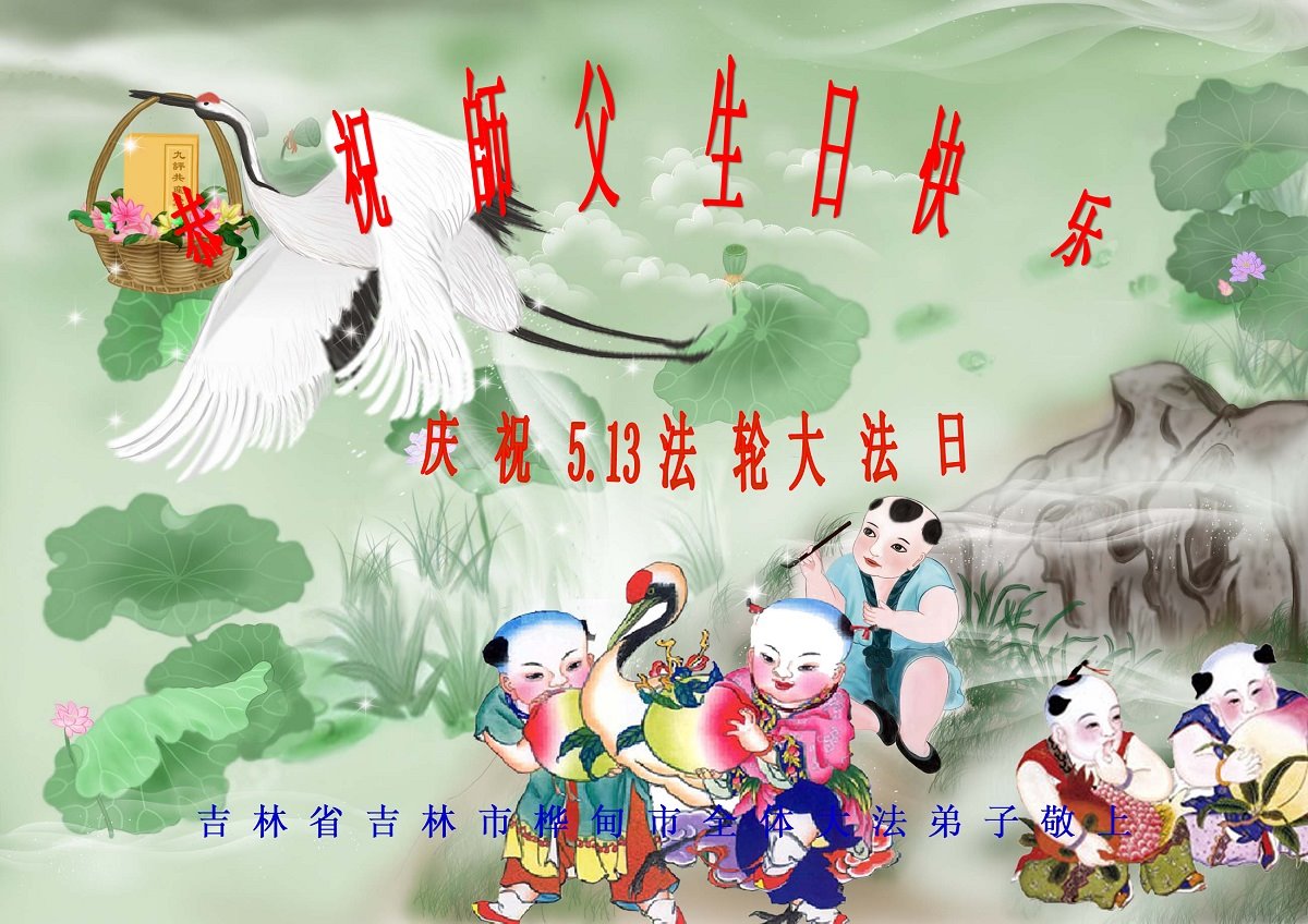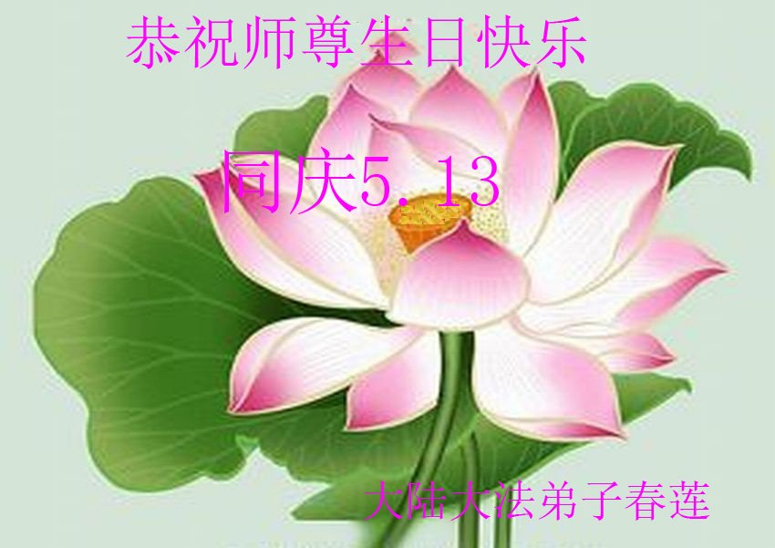 5﹒13是法輪大法日,5月13日又是師父的華誕日。這是大喜的日子,是全世界最可慶賀的盛大的節日,是最美好殊勝的時刻,我們高呼:法輪大法好!真善忍好!弟子跪拜祝恩師生日快樂!祝恩師永遠快樂!