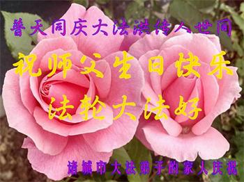 在這普天同慶的大喜日子裏,我們回憶起師父呵護我們走過的日日夜夜,激動的難以言表。我們有時精進,有時懈怠,有時明白,有時糊塗,不管怎樣,師父沒有嫌棄我們,總是以各種形式啟悟我們,點化加持我們,使我們真正體會到您比我們自己更珍惜我們呀!有了師父的慈悲呵護,我們跟頭把式的走到了今天。在正法的最後日子裏,不管遇到甚麼關難,我們都會正念面對,把師父捧給我們的法學好學透,多救人搶人,做好三件事,跟師父回我們久違了的家!再次祝師尊生日快樂!