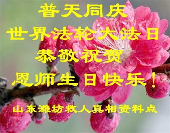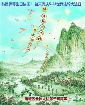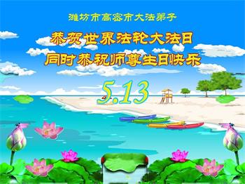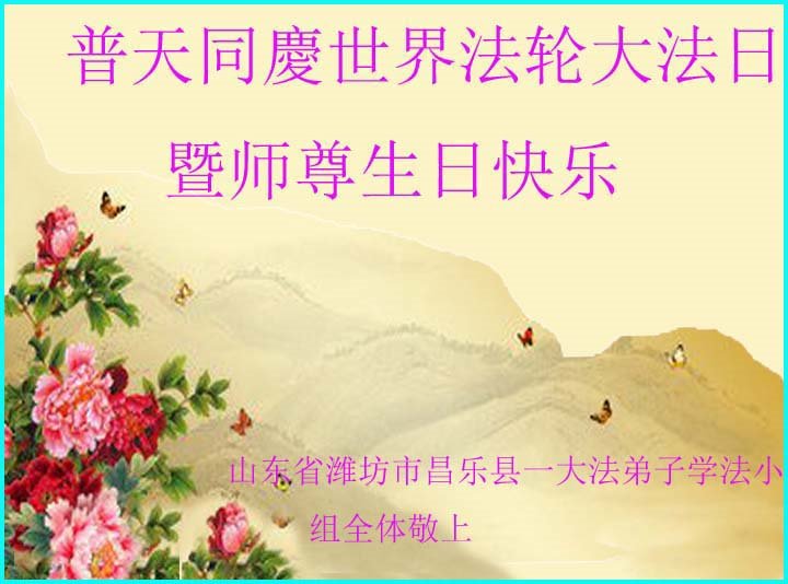 在師尊生日來臨和大法洪傳二十六週年之際,山東省臨沂市蒙陰縣大法弟子恭祝慈悲偉大的師尊生日快樂!恭賀5.13世界法輪大法日!大法洪傳26週年!