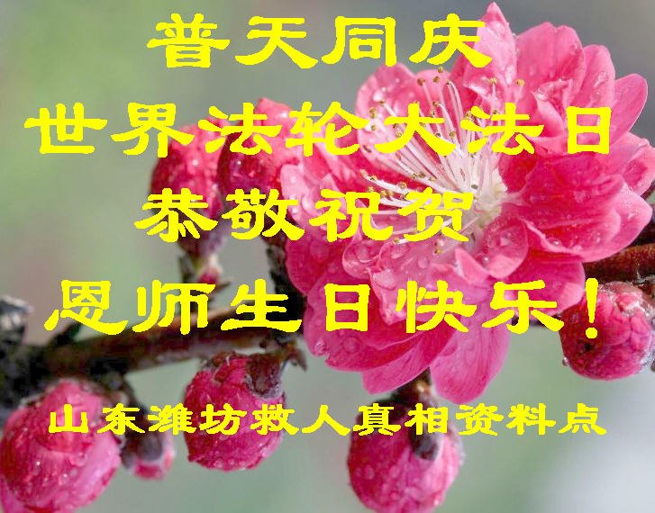 山東省濰坊青州市一學法組大法弟子,在世界法輪大法日來臨之際,跪謝師尊,感謝師尊救度之恩!牢記師父的教誨,做好三件事。