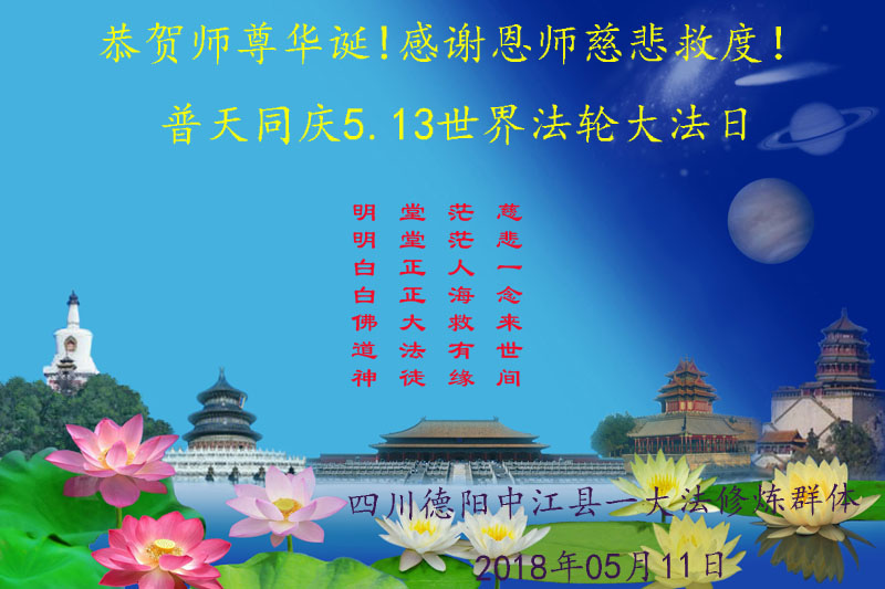 四川德陽中江縣大法弟子恭賀師尊華誕!感謝恩師的慈悲救度!普天同慶5.13世界法輪大法日!