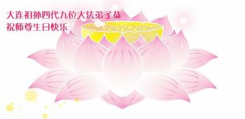 遼寧大連沙河口區大法一弟子恭祝偉大的師尊華誕,祝願師父生日快樂!