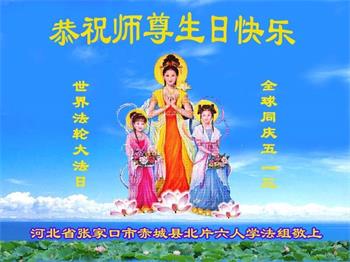 河北張家口大法弟子恭祝師尊生日快樂!恭賀世界法輪大法日!