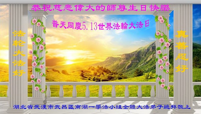 湖北武漢市黃陂區全體大法弟子恭祝師尊生日快樂!暨法輪大法傳世二十六週年,同慶、同祝、同頌世界法輪大法日!