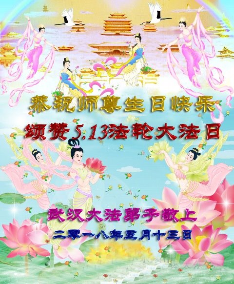 二零一八年五月十三日,是世界法輪大法日!也是師尊華誕!在這普天同慶的日子,我們大法弟子恭祝師尊生日快樂!弟子感謝師尊慈悲的苦度,感謝師尊洪傳大法,感恩師父!叩拜師父!