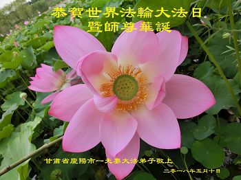 值此師父洪傳法輪大法26週年紀念日,慶陽市鎮原縣大法弟子恭賀世界法輪大法日!恭祝慈悲偉大的師尊生日快樂!師父,您辛苦了。