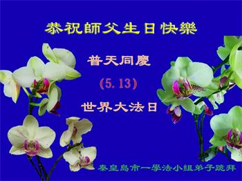 河北秦皇島市開發區一大法弟子祝師父生日快樂!慶祝世界法輪大法日!普天同慶法輪大法日!