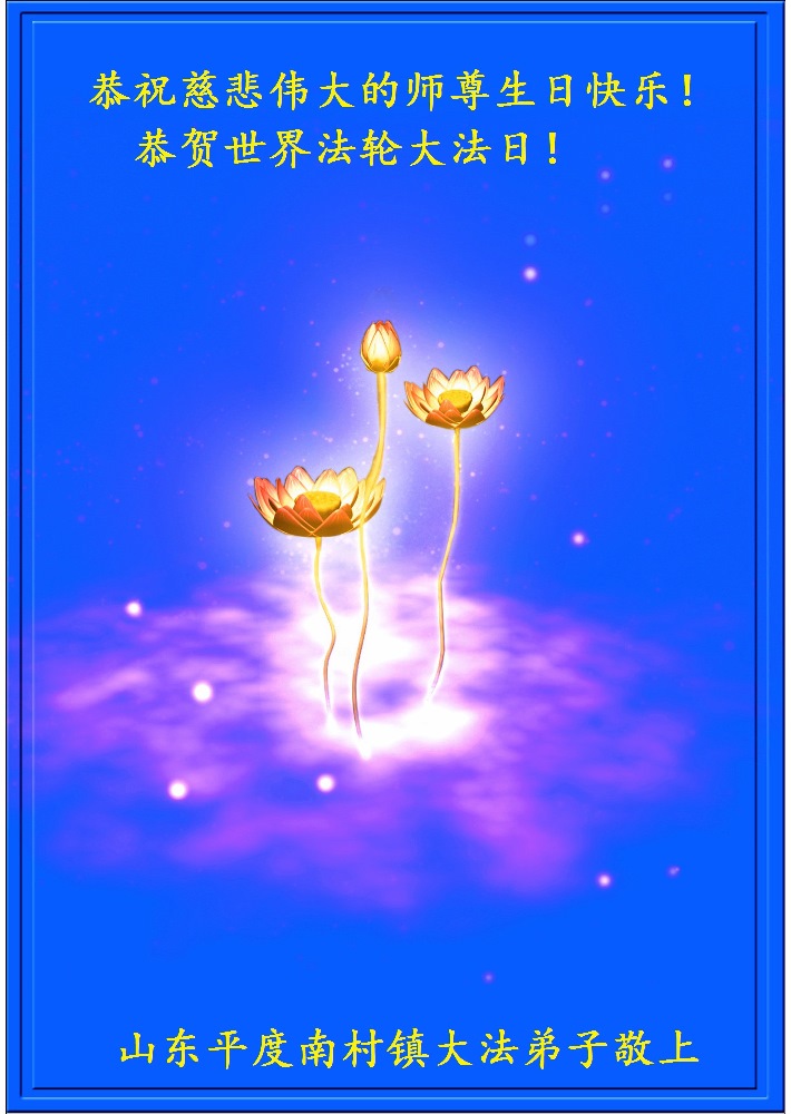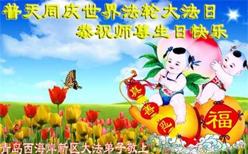 山東青島市萊西市一大法弟子恭祝師父生日快樂!普天同慶世界法輪大法日!