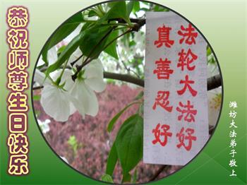 山東濰坊一大法弟子恭祝師尊生日快樂!