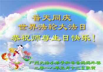 廣州大法小弟子和父母外婆敬祝師尊華誕!恭賀法輪大法日!