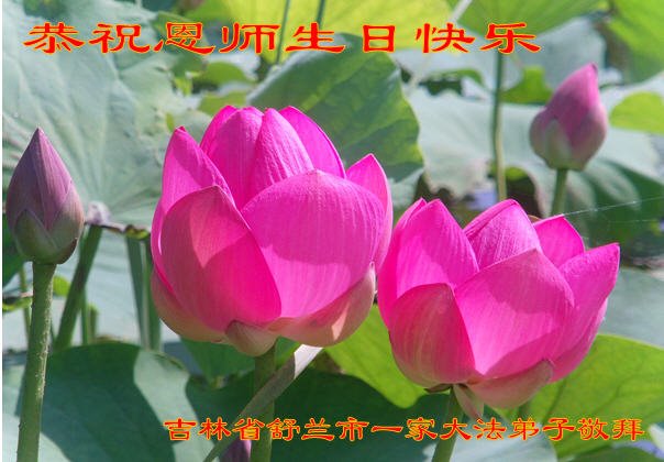 河北省石家莊大法弟子一家恭祝師父生日快樂!