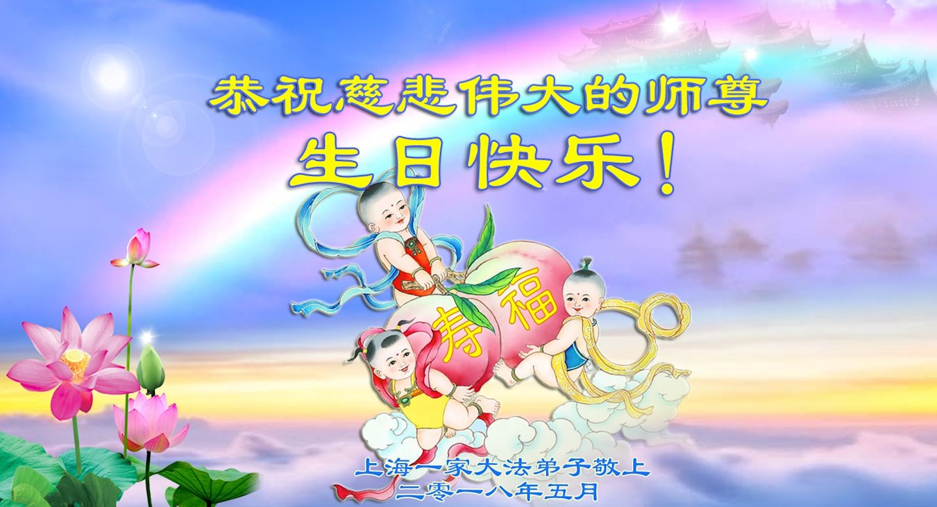 上海一家大法弟子恭祝慈悲偉大的師尊生日快樂!