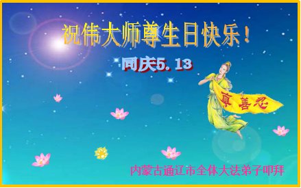 內蒙古通遼市大法弟子恭祝師尊生日快樂!恭賀法輪大法日!
