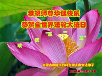 內蒙古赤峰市巴林左旗夫妻大法弟子恭祝師尊華誕快樂!恭賀全世界法輪大法日!