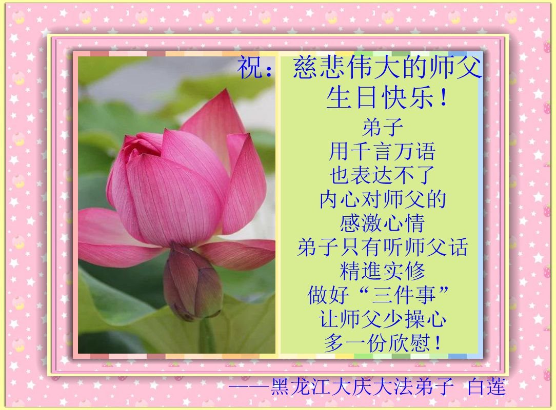 黑龍江省大慶市大法弟子恭祝師父生日快樂!
