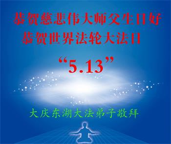 黑龍江省大慶東湖大法弟子恭祝慈悲偉大的師父生日快樂!恭賀世界法輪大法日!