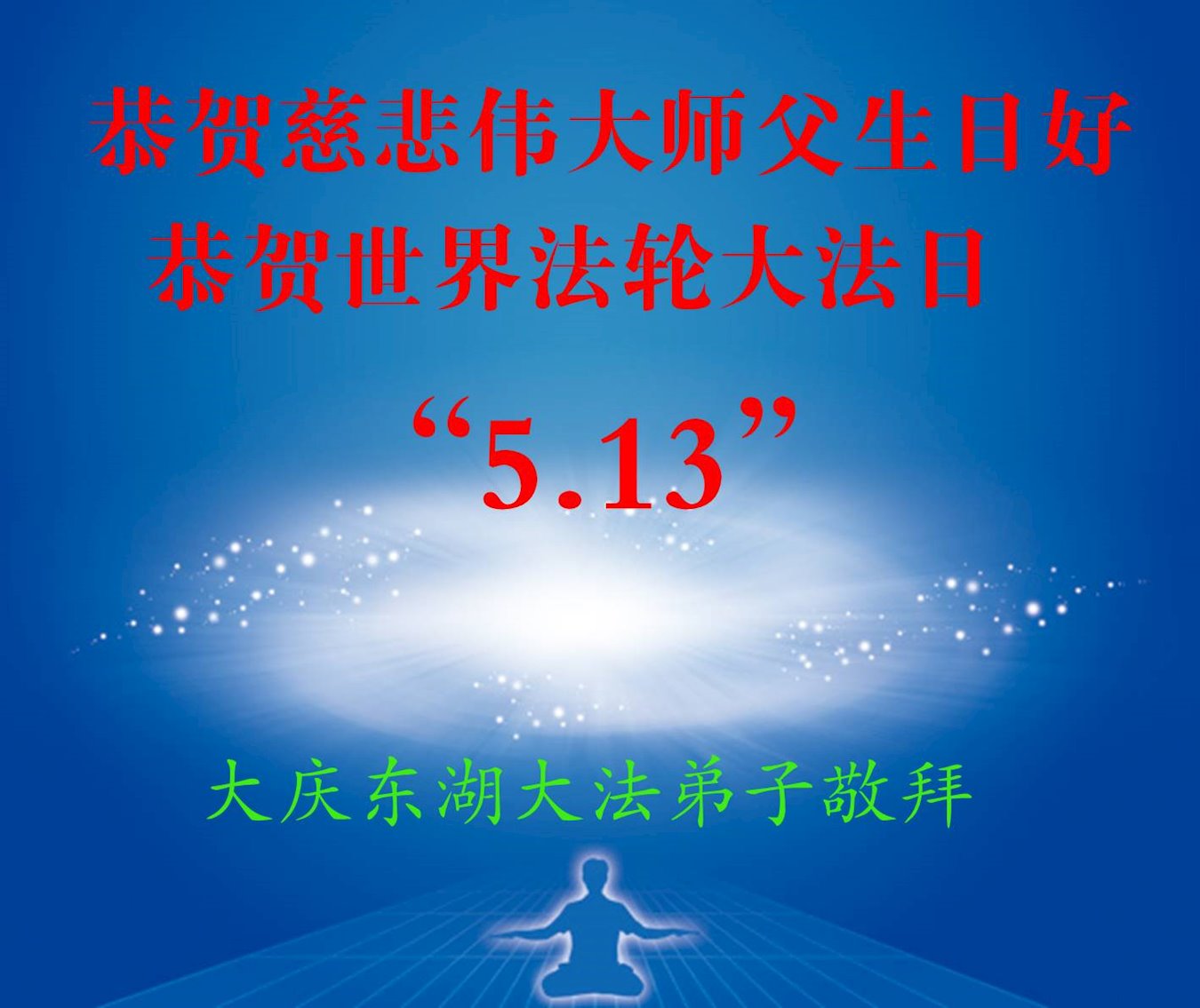 黑龍江省大慶市東風新村九區大法弟子恭祝師尊生日快樂!普天同慶5.13世界法輪大法日!