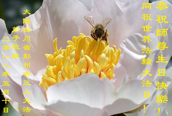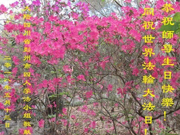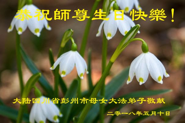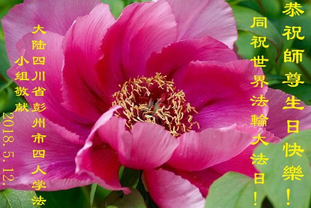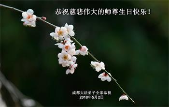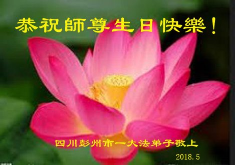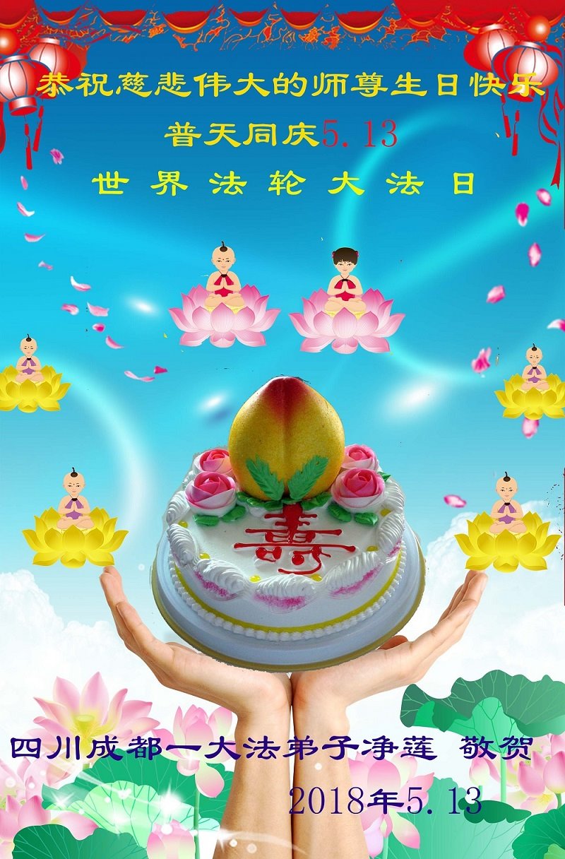 恭祝師尊生日快樂!同慶五一三世界法輪大法日!師尊您為救度眾生費盡了您的一切,弟子唯有多學法、多救人回報師恩,請師尊放心!謝謝師尊!成都一大法弟子及全家叩拜!