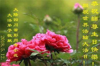 四川省成都市彭州市一大法弟子及被師父救度的兒子恭祝師尊生日快樂!