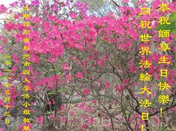 四川省成都市崇州市全體大法弟子恭祝師尊生日快樂!