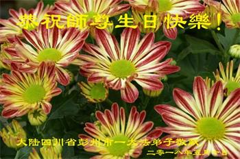 四川省成都市彭州市一大法弟子恭祝師尊生日快樂!