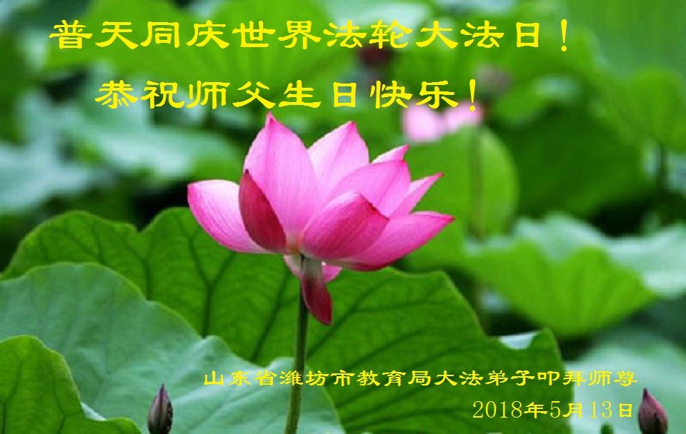 山東省濰坊市教育局大法弟子恭祝慈悲偉大的師尊生日快樂!恭賀世界法輪大法日!